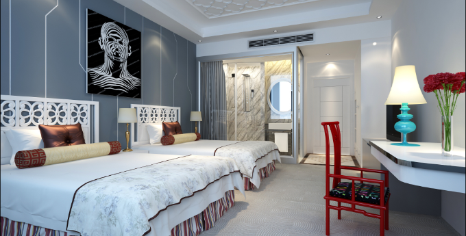 独具个性的大挂画、几何图形的光影变化,使空间错落有致。结合多元性的材质种类,将客房营造出一种时髦混搭的轻奢氛围。整个空间的统一性、流动性又使整体和谐精致,以新式美学熏染出一片张扬写意。颜值与个性并存,富有生机与活力。